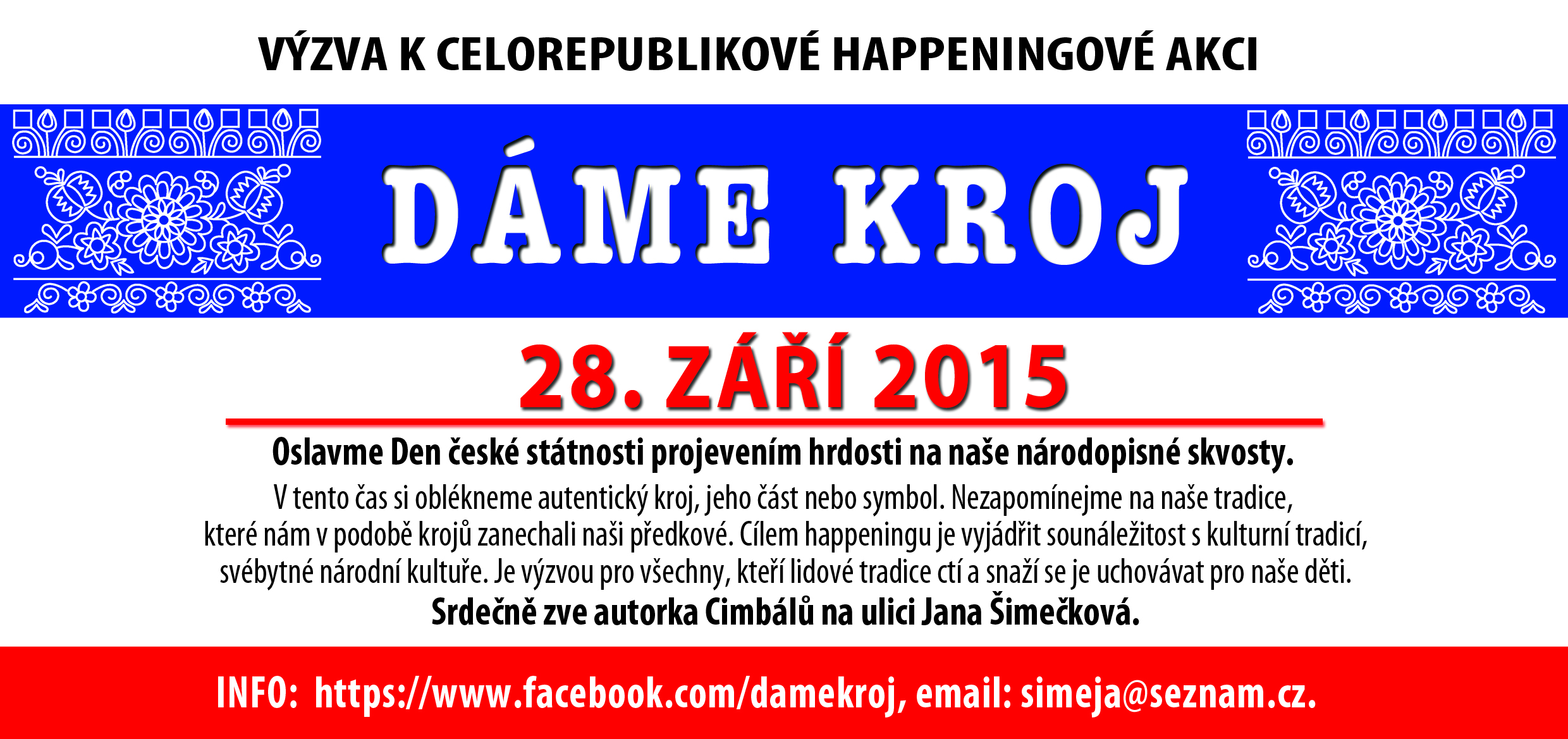 V pondělí 28. září 2015 se uskuteční celorepubliková happeningová akce nazvaná "Dáme kroj" inspirovaná folklórem. Nejen v den státního svátku, kdy si připomínáme osobnosti slovanských věrozvěstů Cyrila a Metoděje, má upozornit na tradice České republiky. Určena je pro všechny, kterým není lhostejné, jaké krásy máme kolem sebe. Cílem happeningu je vyjádřit sounáležitost svébytné národní kultuře. Oblečení autentického kroje, jeho části nebo nošení symbolu má pomoci podnítit národní hrdost a připomenout tuzemské národopisné skvosty, které nám nechali naši předci. „Dáme kroj“ je možností pro všechny patrioty, kteří ctí lidové tradice a snaží se je uchovávat pro naše děti.