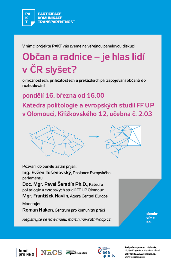 Více o projektu PAKT - participace, komunikace, transparentnost naleznete na www.paktparticipace.cz.