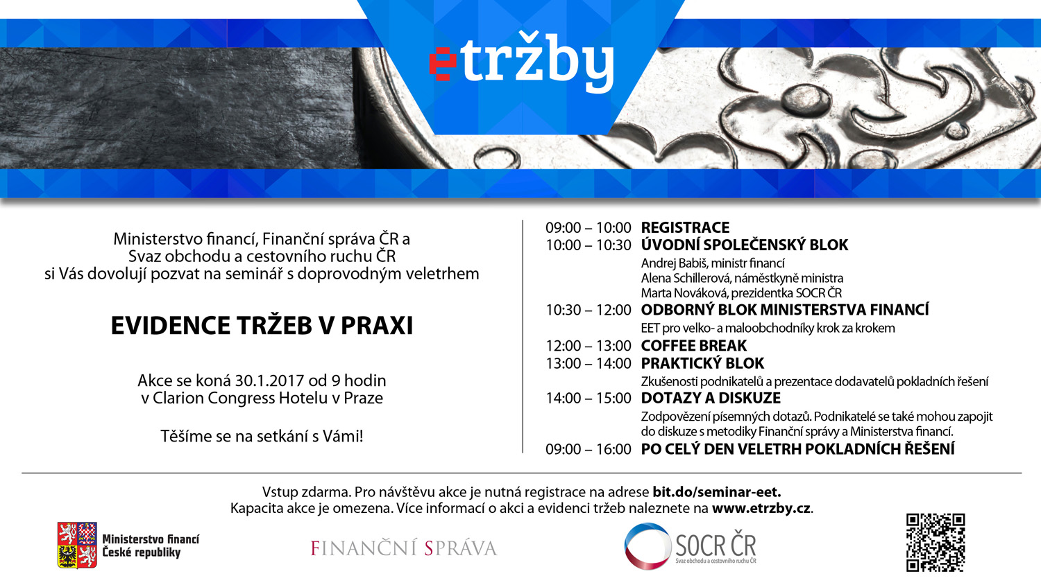 Akci v pondělí 30. 1. 2017 v Praze pořádá Svaz obchodu a cestovního ruchu ČR ve spolupráci s Ministerstvem financí a Finanční správou ČR.