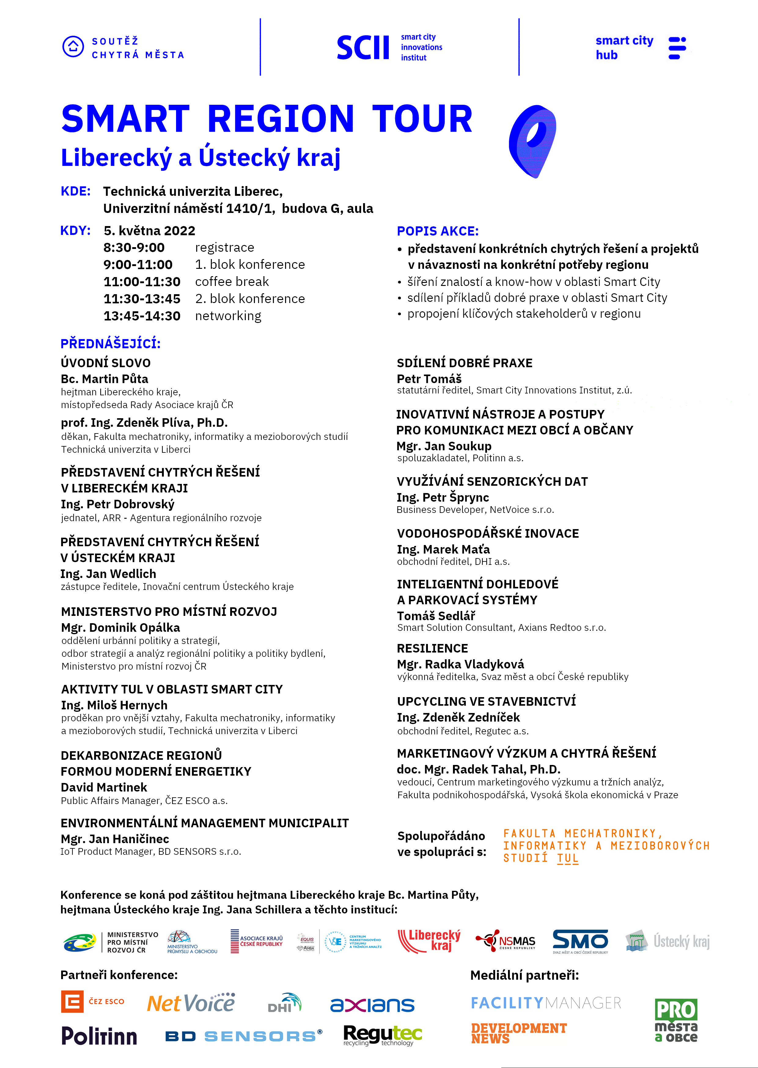 - Představení konkrétních řešení v oblasti Smart City v návaznosti na konkrétní potřeby regionu,