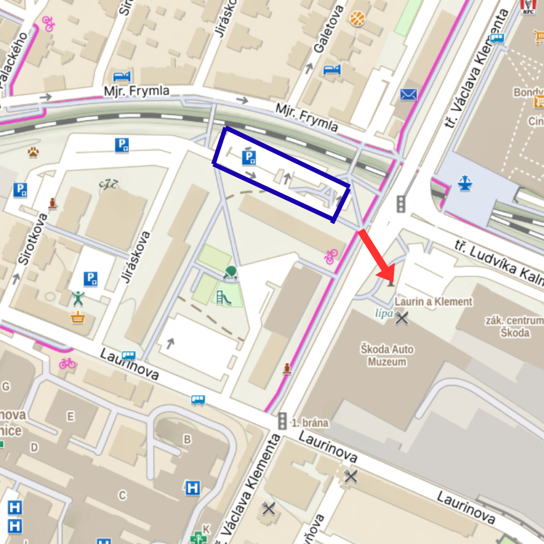 Popis cesty z parkoviště do budovy konání: Vystupte z auta a jděte ke třídě Václava Klementa, na semaforu přejděte přes ulici a dostanete se k budově muzea. Po vstupu do muzea vyjděte po schodech do 1. patra.