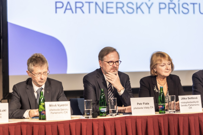 První vystoupil premiér Petr Fiala. Vláda si uvědomuje, že obce čelí řadě negativních vlivů, vylidňování, nízké kapacitě ve školských zařízeních, dopadům covidové epidemie, zvyšování cen energie i stavebních materiálů. Je nutné společně proti nim bojovat, spolupracovat ruku v ruce.