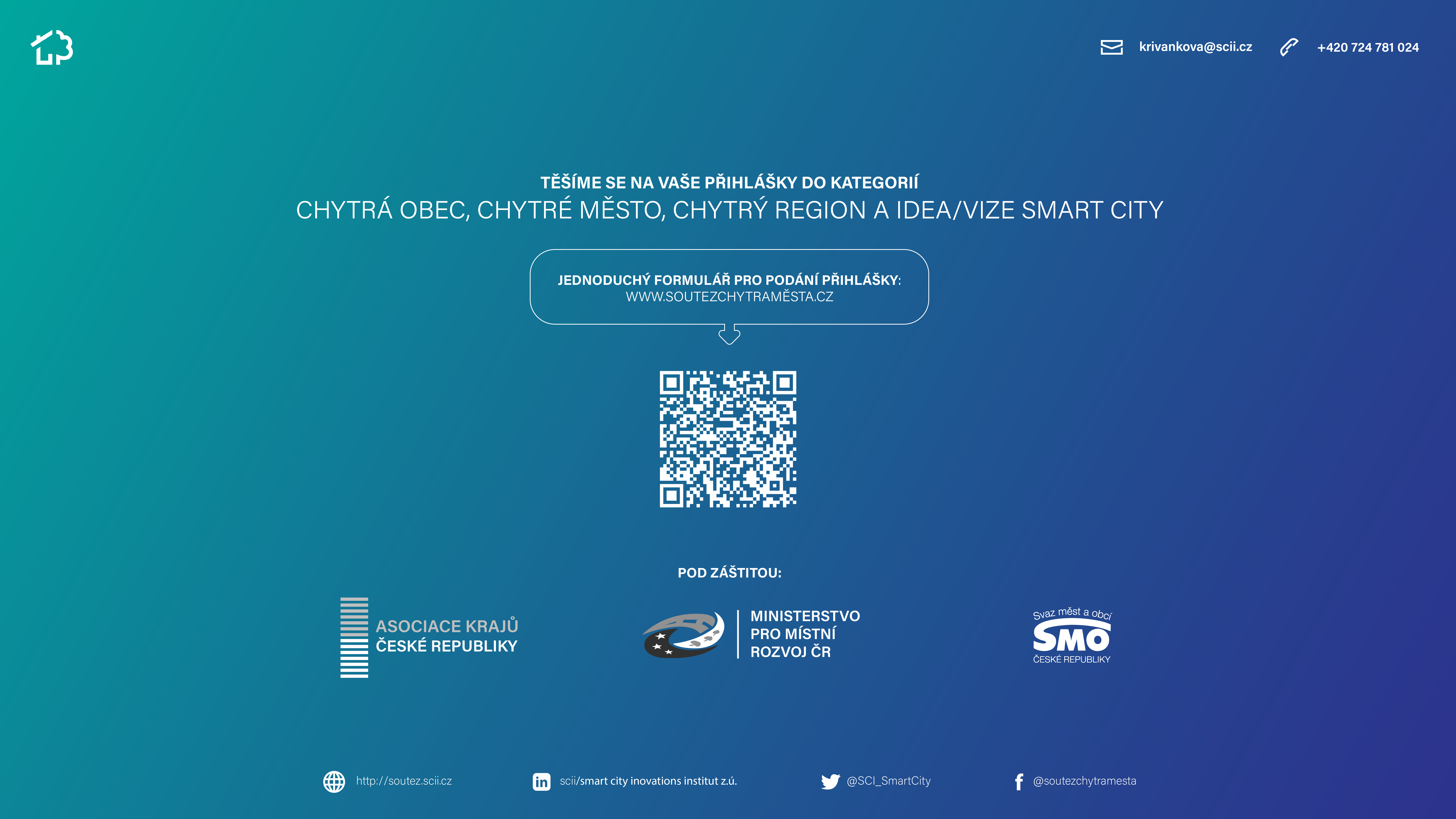 V případě jakýchkoli dotazů nebo pro případnou podporu při podání přihlášky nás můžete kontaktujte prostřednictvím e-mail: krivankova@scii.cz nebo telefonním čísle: 724 781 024.