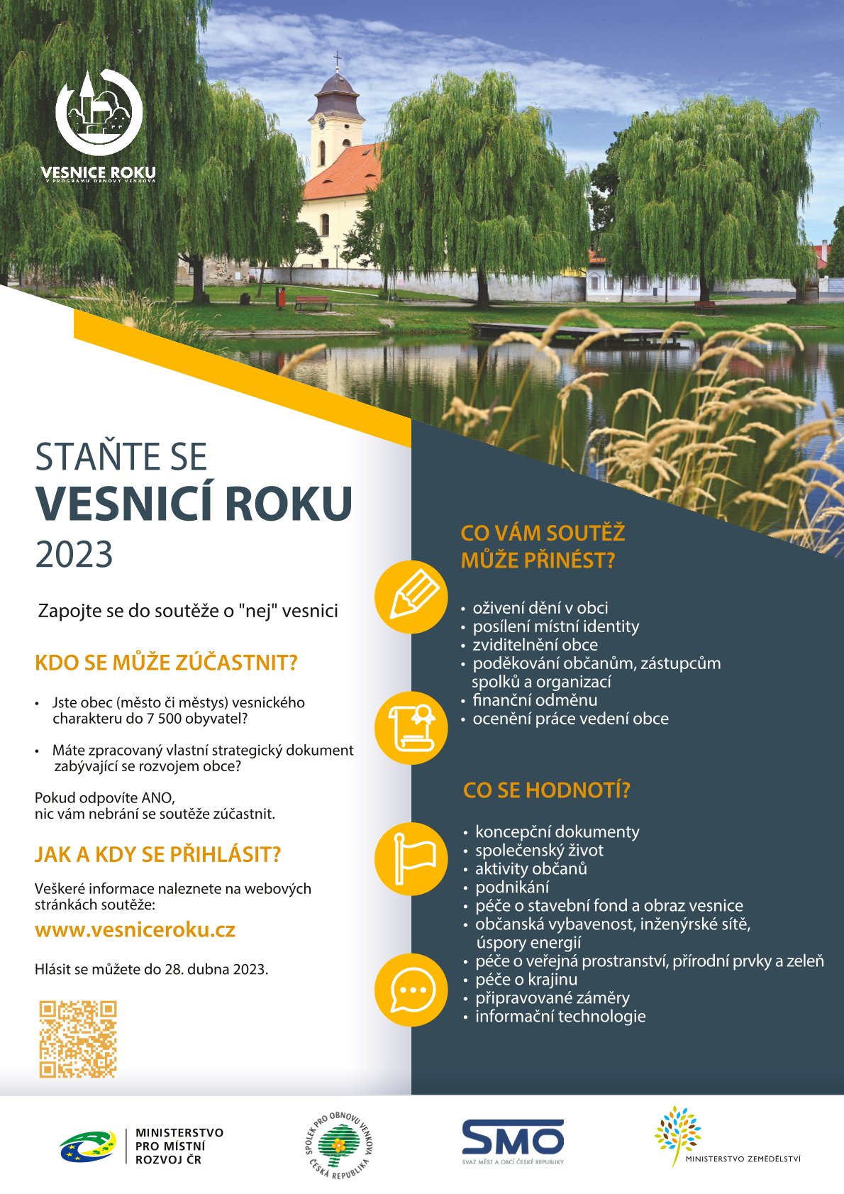 Oblíbená soutěž Vesnice roku 2023 byla opět zahájena. Hlásit se mohou do 28. dubna obce, města a městyse do 7500 obyvatel.