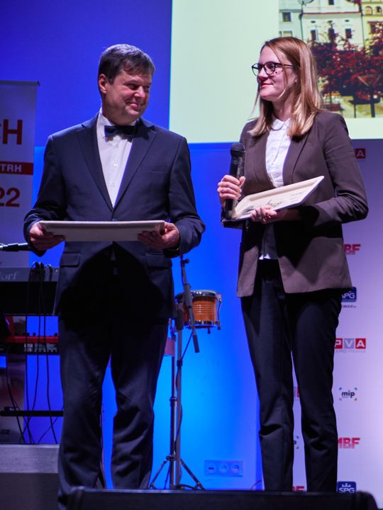 Soutěž Architekt obci opět ocenila příkladnou dlouhodobou spolupráci samosprávy a architekta. Cenu předala ředitelka Svazu měst a obcí Radka Vladyková v rámci slavnostního večera, který proběhl 21. září v rámci veletrhu FOR ARCH.