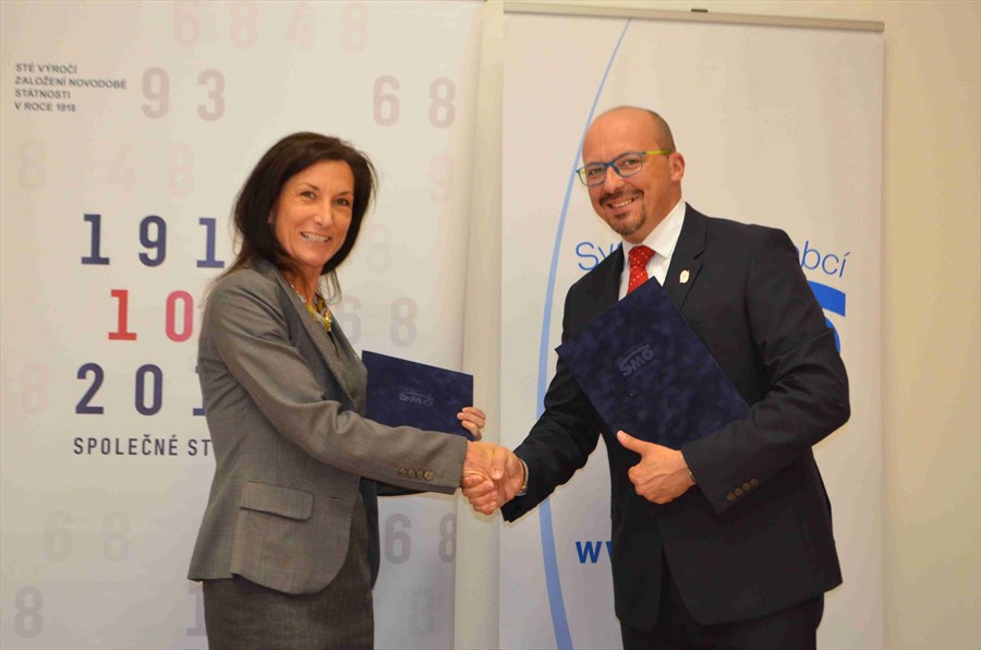 Podepsání Memoranda o spolupráci mezi Svazem měst a obcí ČR a agenturou CzechTourism: František Lukl, předseda SMO ČR a starosta města Kyjova, a ředitelka agentury Czech Tourism Monika Palatková.