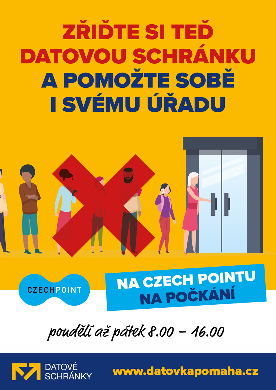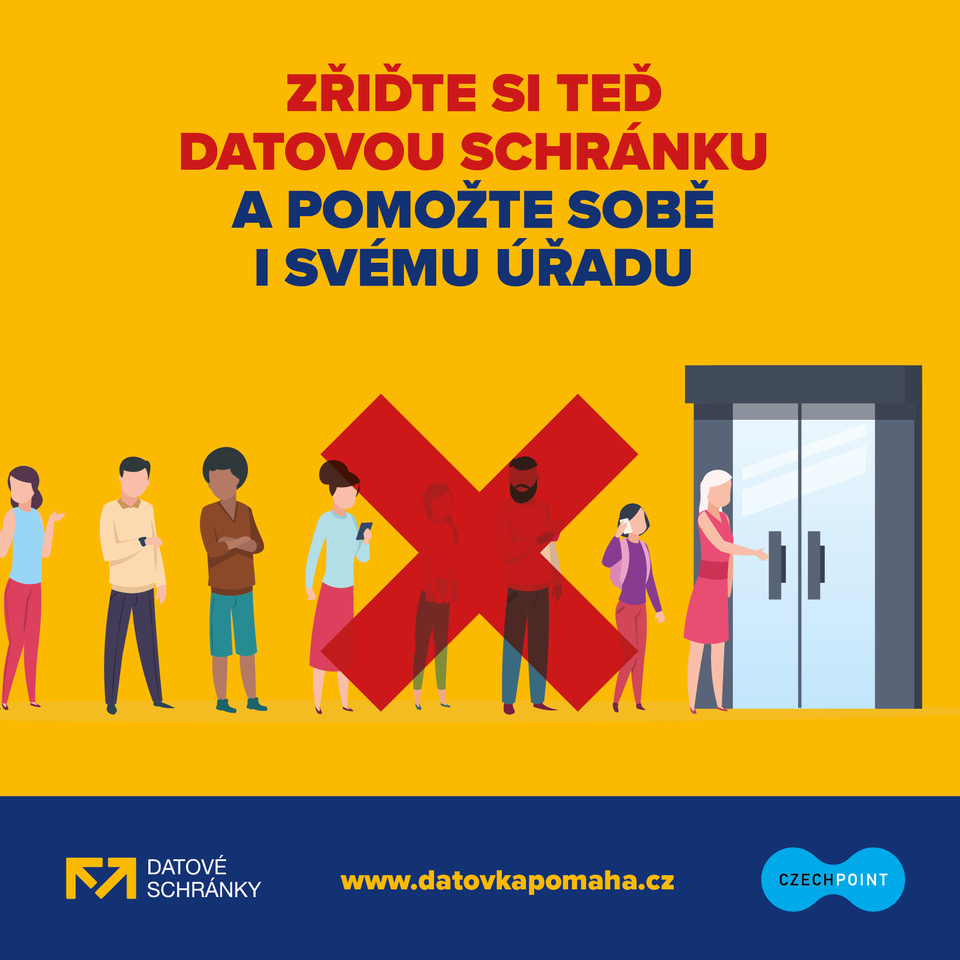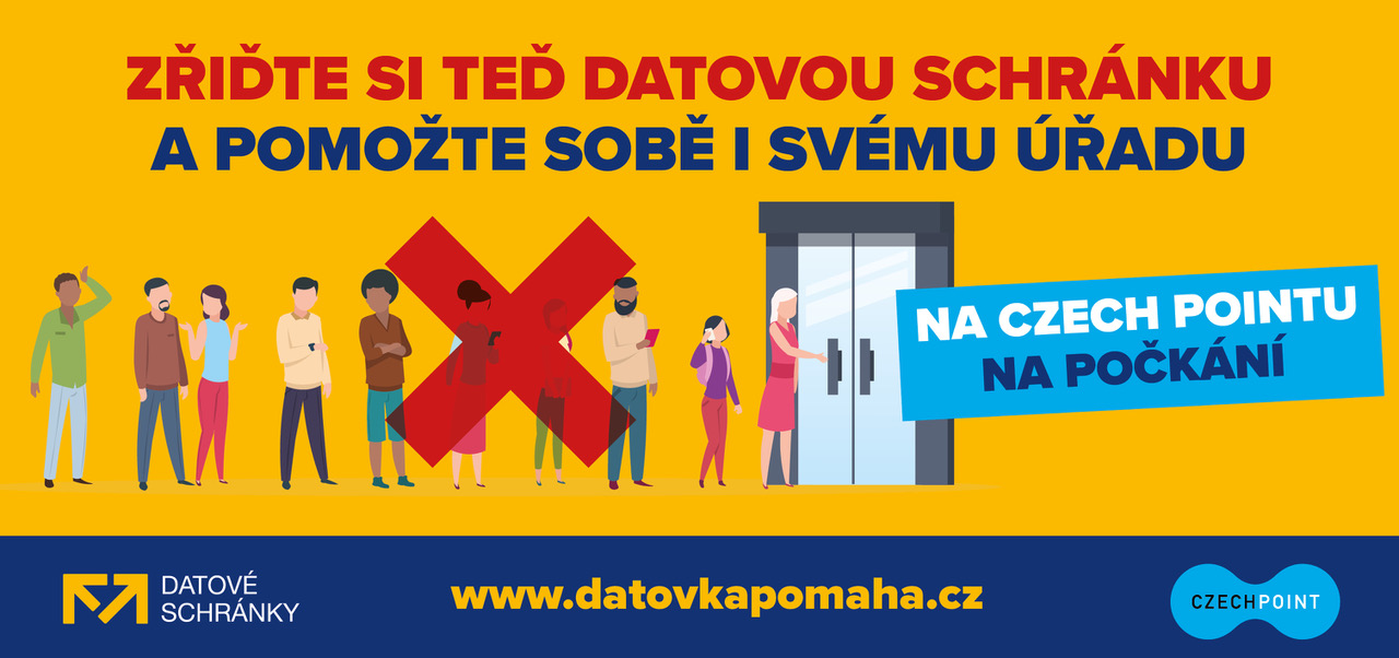 Datovka pomáhá je společná výzva občanům a podnikatelům: Zřiďte si datovou schránku a pomozte sobě i svému úřadu. Datovou schránku si je možné zařídit osobně na jakémkoliv CzechPOINTu. Dohoda Ministerstva vnitra ČR a Ministerstva zdravotnictví ČR nyní umožňuje provozovat pracoviště CzechPOINTů na úřadech i mimo stanovené úřední hodiny. S ohledem na rizikovou práci pracovníků CzechPOINT si jejich provozovatelé mohou zažádat o ochranné štíty pro exponované pracovníky zdarma.