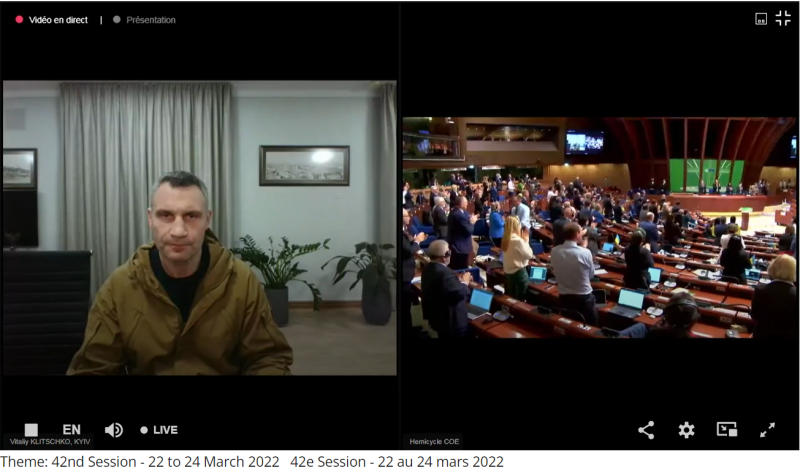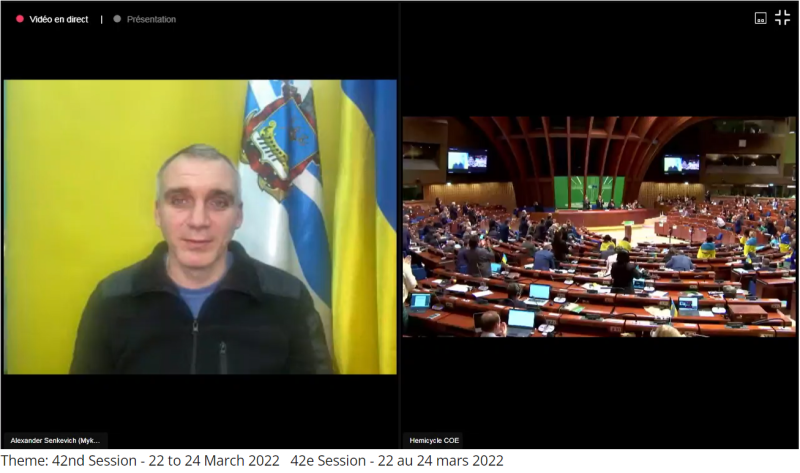Kongres místních a regionálních samospráv Rady Evropy ve Štrasburku se ve dnech 21. - 24. března 2022 nesl v duchu odsouzení vojenské agrese RSFSR vůči Ukrajině. Již v předvečer jednání jsme mohli vyslechnout svědectví ukrajinských kolegů a kolegyň o zvěrstvech, která jsou páchána z rozkazu prezidenta Putina ruskou armádou na Ukrajině. Všichni jistě sledujeme zprávy z války na Ukrajině, ale když posloucháte konkrétního člověka, který sděluje osobní svědectví z bombardování měst, z pobytů v protileteckých krytech a bohužel také o obětech na životech včetně dětských, neubráníte se pohnutí. V průběhu zasedání se také on-line připojili bratři Kličkové, kteří své pozice ministra a starosty Kyjeva vyměnili za vojenskou uniformu. Popsali strašlivou situaci na Ukrajině, požádali o pomoc při odražení ruské agrese a ujistili všechny přítomné, že Kyjev se ubrání za každou cenu. Na závěr jednání tohoto bodu byla přijata deklarace, která striktně odsuzuje ruskou agresi proti Ukrajině. Pro text hlasovali jednomyslně všichni přítomní delegáti, bez jediné výjimky.